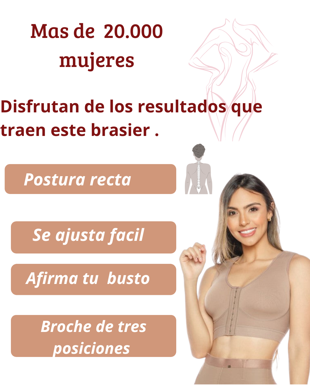 Imagina poder caminar con una mejor postura, sin dolores, sintiéndote segura y más atractiva. Con este brasier, no solo mejoras tu salud postural, también realzas